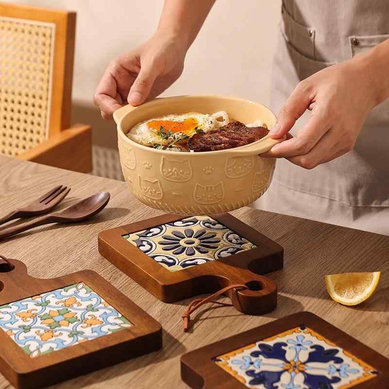 鍋敷き 木製 鍋つかみ キッチン カウンター 碗 皿 コースター 断熱 装飾品 2枚セット レトロ