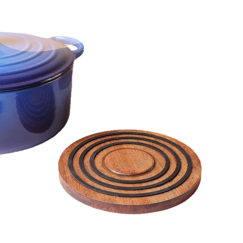 Le Creuset ル・クルーゼ 木製マグネット式トリベット (アカシア・ウッド) シリコン・リング付き鍋敷き ルクルーゼ