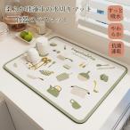 水切りマット 珪藻土 キッチン用 マット 水切りラック おしゃれ 拭ける アスベスト不使用 大判 瞬間吸水 速乾 抗菌 ソフト 鍋敷き 滑り止め シリコン 食器置き
