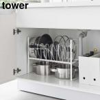 特典付き 山崎実業 tower シンク下高さ調整鍋蓋&フライパン収納ラック 2段 タワー ( 4903208055932 タワーシリーズ シンク下収納 引き出し シンク下 ラック )