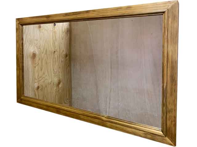 【期間限定10%OFF】ミラー 横型 80x2x50cm アンティークブラウン 大型鏡 吊り下げ金具つき 木製 ひのき ハンドメイド オーダーメイド