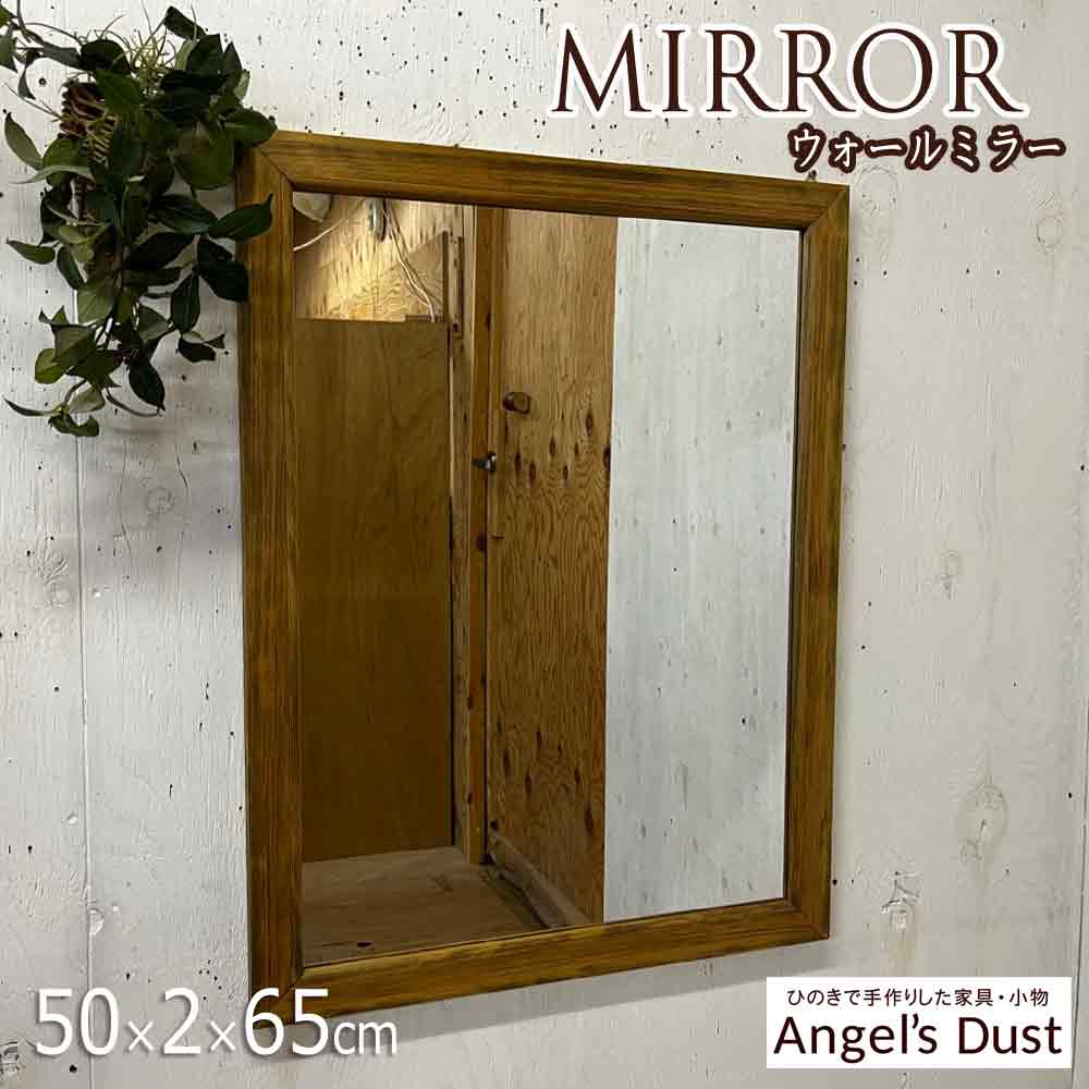 【期間限定10%OFF】ミラー 壁掛け 鏡 50×2×65cm 三角吊り金具 ウォールミラー 木製 ひのき ハンドメイド オーダーメイド