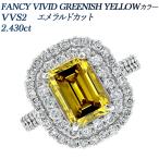 ダイヤモンド リング 2.4ct FANCY VIVID GREENISH YELLOW VVS2 エメラルドカット プラチナ Pt 鑑定書付