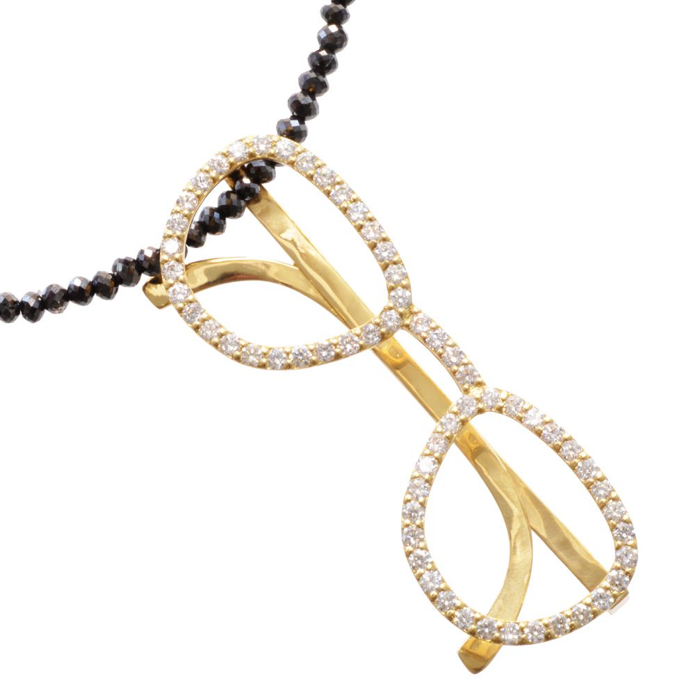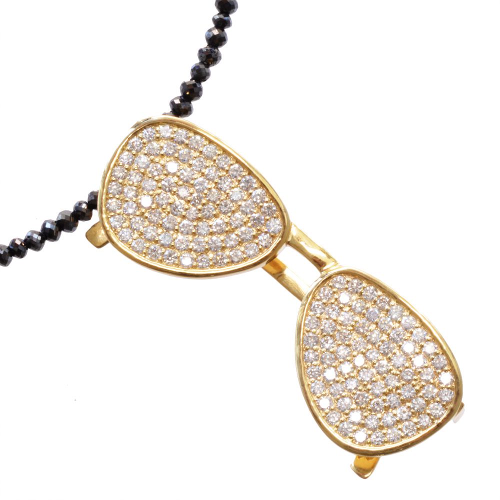 【マラソン期間限定★10%OFFクーポン】ネックレス メンズ 18金 K18 18K ダイヤモンド サングラス 眼鏡モチーフ プラチナ ブラックダイヤモンド 20カラット 44cm ペンダント イエローゴールド メガネ ウェリントン 刻印入り 鑑別書付き プレゼント ギフト