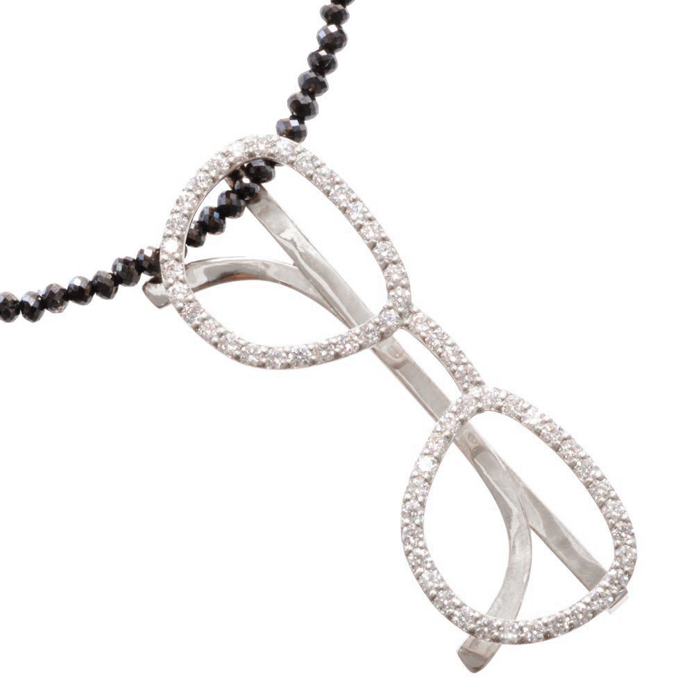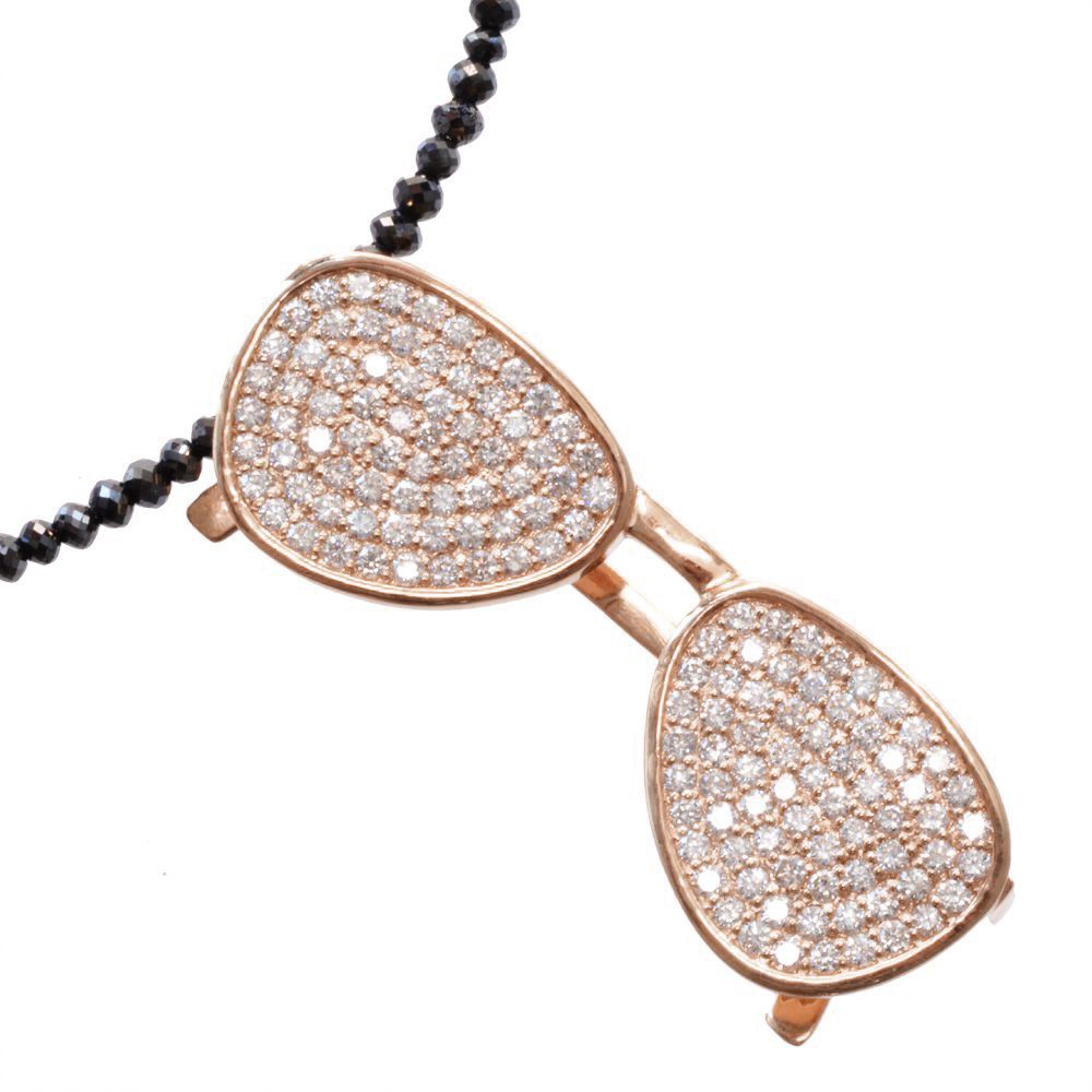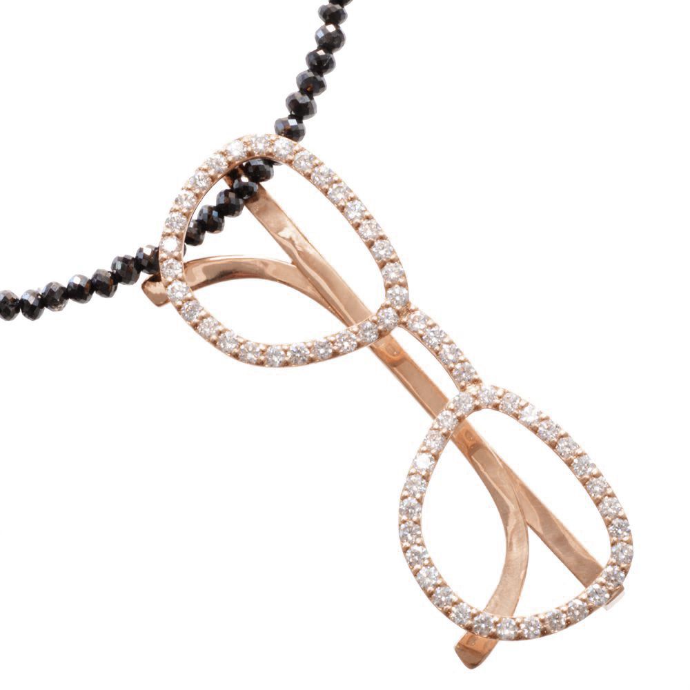 【マラソン期間限定★10%OFFクーポン】ネックレス メンズ K18PG 18金 プラチナ ブラックダイヤモンド 20カラット ダイヤモンド 眼鏡 サングラス ピンクゴールド ペンダント セット 44cm 刻印入り 鑑別書付き プレゼント ギフト 30代 40代 50代 60代