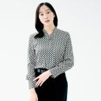 【通勤インナーブラウス】幾何柄ボウタイブラウス