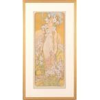 アルフォンス・ミュシャ 花・百合 インテリア 絵画 アールヌーボー リトグラフ 複製版画 プレゼント コレクション 新築祝い 開店祝い 新品額付き