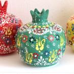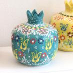 トルコ陶器 ザクロ Mサイズ 高さ9.5×直径8.5cm フラワーデザイン エメラルドグリーン