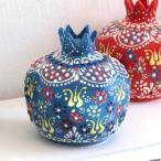 トルコ陶器 ザクロ Mサイズ 高さ9.5×直径8.5cm フラワーデザイン ターコイズブルー
