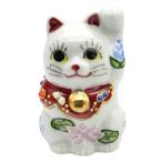 九谷焼 招き猫(左手人お客招き猫)2号彼岸花