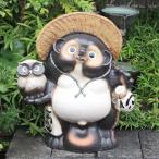 信楽焼 30号ふくろう持ち狸 たぬき タヌキ 開運 縁起物 可愛い 商売繁盛 ギフト 開店祝 置物 かわいい フクロウ 大きい 庭 玄関 ta-0239