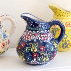 トルコ陶器 ミルクピッチャー 花瓶 高さ10×直径10cm フラワーデザイン ネイビー
