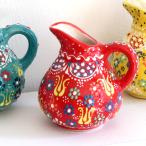 トルコ陶器 ミルクピッチャー 花瓶 高さ10×直径10cm フラワーデザイン レッド