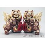 九谷焼 対剣獅子 盛 6号 ( 木札名入れ有料 退職祝い 定年 置物 幸運 開運 まねきねこ 風水 九谷焼 結婚 出産 内祝い 引き出物 金婚式 )