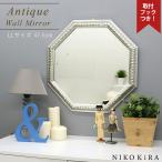 鏡 壁掛け 壁掛け鏡 ウォールミラー 壁掛けミラー ミラー 八角形 おしゃれ 玄関 洗面所 洗面 アンティーク 八角鏡 風水 シルバー 銀 47.5cm LL 開運 インテリア