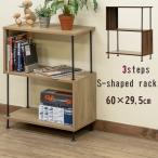 オープンラック 幅60cm 3段ラック S字 棚 電話台 本棚 ディスプレイ S型 モダン おしゃれ 収納 仕切り 木目柄板 スチール脚 サイドテーブル