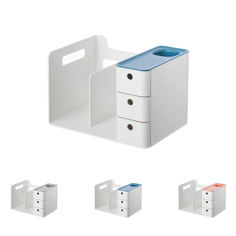 引き出し付き卓上収納ラック、本棚、間仕切りラック、組み立て不要、小物収納、整理整頓 (オレンジ)