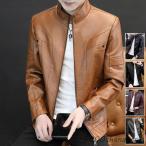 メンズ革ジャン 秋冬 レザー 大きいサイズ カジュアル 立ち襟 ライダース バイクウェア シングル 防寒防風 お兄系