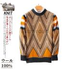ウール100 ニットセーター メンズ 長袖 おしゃれ 柄もの 総柄 大人 ニットセーター クルーネック ニットソー トップス 暖かい 防寒 20代 30代 40代 50代