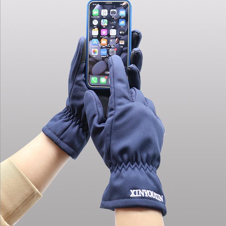 手袋 男性用 防寒 グローブ 裏起毛 防風 バイク 自転車 深青 石墨色 深グレー(x100)