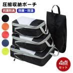 4点セット 圧縮バッグ コンパクト 旅行用圧縮袋 トラベルポーチ シューズバック 収納ポーチ ファスナー圧縮 撥水 仕分け 収納ケース 持ち手付き 省スペース