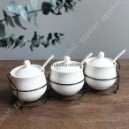 陶器 シュガーポット スプーンで 塩ポット 調味料ポット 塩 コショウ 砂糖入れ 調味料ケース スパイスボトル 薬味入れ 塩胡椒入れ 4個 ラック付き 大容量