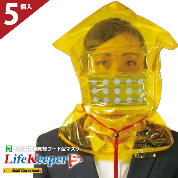 【5個セット】 火災避難用 防煙フード型マスク ライフキーパーS防煙マスク 防災製品等推奨品 LifeKeeperS 煙フード 火災 緊急 生命 地震 日本製 Made in Japan