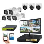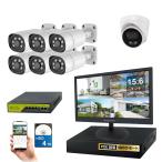 NVRPoE給電800万画素防犯カメラ(ドーム型3台)(バレット型5台)・録画機 (4TB付)・15.6インチモニターセット [SEC-N-5K3FK-16L-4T]