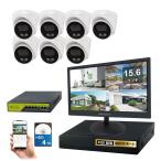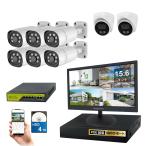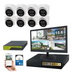 NVRPoE給電500万画素防犯カメラ(ドーム型8台)・録画機 (4TB付)・15.6インチモニターセット [SEC-N-8FM-16L-4T]