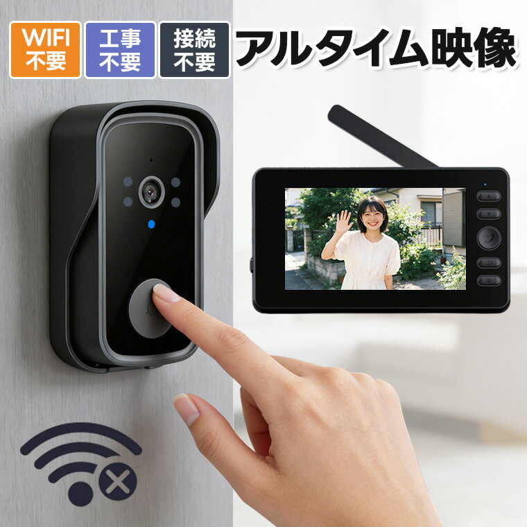 \10%OFFクーポン&P5倍UP!/【リアルタイム監視&IP65防水&WIFI不要】インターホン ワイヤレス 工事不要 ドアホン ビデオドアベル テレビドアホン ビデオドアベル ビデオドアホン ワイヤレスドアホン 録画 カメラ付き 配線不要 電源不要 暗視 玄関 双方向音声