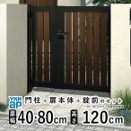 門扉 親子開き おしゃれ アルミ門扉 YKK 門扉フェンス 木目調 ルシアス TS2型 複合色 門柱式 扉幅40+80cm 扉高さ120cm 04・0812