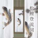 掛け軸「松鯉登流図」 神田有記 尺五立 サイズ:54.5×190cm 桐箱付 掛け軸 和室 おしゃれ 日本画 防虫 剤 送料無料 表装 床の間 収納 木 箱 モダン