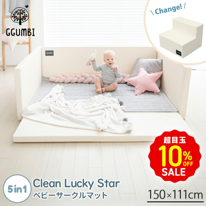 超目玉10%OFF ベビーベッド サークルマット プレイマット バンパーベッド マット ベビーサークル セーフティグッズ 防音 防水 床暖房対応 ノン ホルムアルデヒド 折りたたみ ベビーマット Ggumbi クリーンラッキーサークルマット Clean Lucky Star