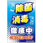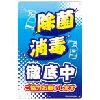 除菌 消毒徹底中 注意喚起ステッカー H203×W135mm ST-015 シール 縦型 屋外用 ミニ マナー ウイルス対策 告知 区分Y