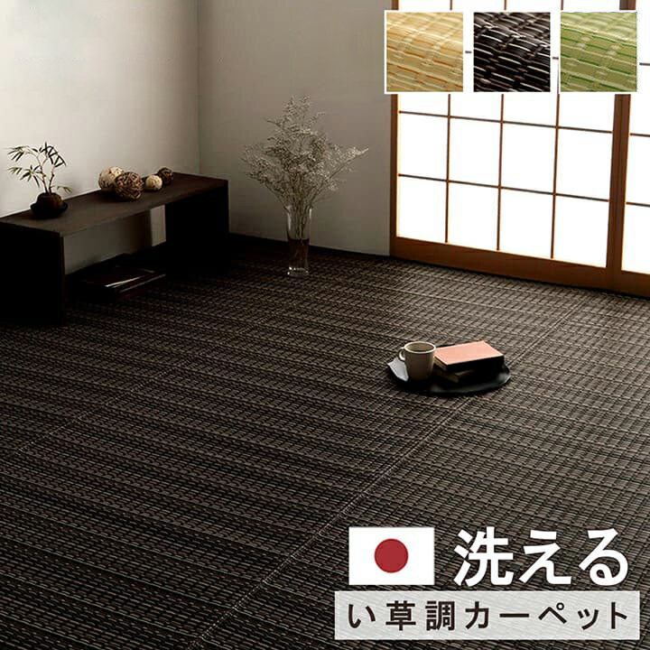 【先着3枚50%OFFクーポン!スーパーSALE期間限定】洗える カーペット 4.5畳 6畳 8畳 10畳 江戸間 本間 団地間 ラグ 丈夫 日本製 国産 除菌スプレー対応 ござ アウトドア ペット 敷詰 おしゃれ い草風 ブラウン グリーン ベージュ バルカン