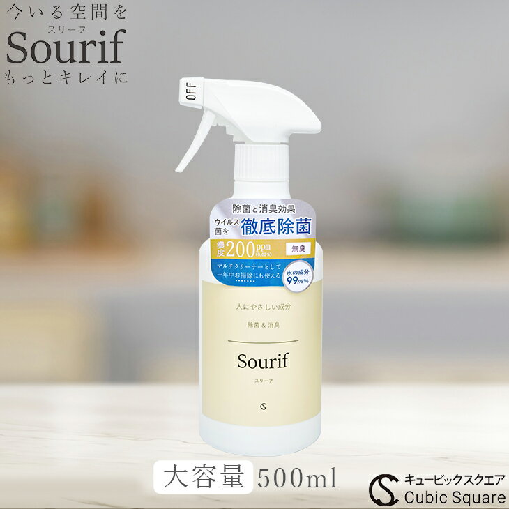 【クーポン10%OFF】除菌スプレー スリーフ Sourif 500ml 除菌 消臭 消臭スプレー ウイルス 菌 次亜塩素酸 200ppm 次亜塩素酸水 マルチクリーナー キッチン 靴 スニーカー 服 赤ちゃん 哺乳瓶 おもちゃ 衣類 花粉 予備トリガー 2本で送料無料