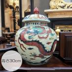 景徳鎮 嘉靖赤絵龍文蓋付壺 高さ約30cm 景徳鎮壺 龍 陶磁器 大明萬暦年製の銘 磁器 壺 中国 美術 竜 花瓶 白磁 工芸品 美術品 装飾品 置物