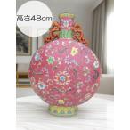 景徳鎮 粉彩花文扁壺 花瓶 全高49cm 壺 中国 美術 陶磁器 景徳鎮壺 花器 花生 磁器 希少 乾隆年製 インテリア 花生 大型 花入 装飾品 置物