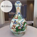 景徳鎮 嘉靖赤絵龍文花生 壺 高さ36cm 花瓶 景徳鎮壺 陶磁器 花器 中国 美術 大明宣徳年製の銘 白磁 工芸品 美術品 装飾品 置物