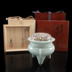三代 諏訪蘇山 作 青磁袴腰香炉 松興堂 造 純銀 四君子肉彫火舎 茶道具 陶磁器 _【I122826024】中古
