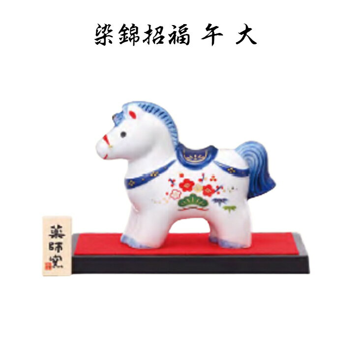 【ブラックフライデー 20%OFFクーポンあり】 干支 置物 午 染錦招福 午 大 干支の置物 馬 干支 馬 干支 置物 薬師窯 2026 年 干支の置物 馬 陶芸 干支 馬の置物 馬の置物 干支 干支 12支 干支 午 置き物 干支 お守り 馬 干支 プチギフト