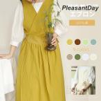 前後着用可 Vネックエプロン ドレスエプロン レディースワークエプロン ロングエプロン カフェエプロン ワンピースエプロン おしゃれ 綿100% 無地 透けない