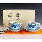 有田焼 陶芸家 藤井錦彩作 瑠璃釉金彩梅絵コーヒーカップペアセット