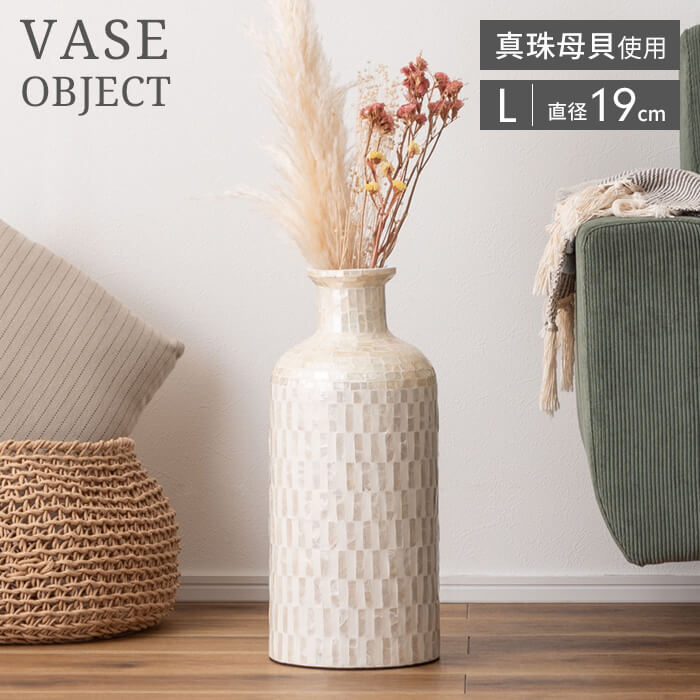 【楽天スーパーSALE10%OFF】花瓶 フラワーベース Lサイズ 生花 一輪挿し ドライフラワー おしゃれ 真珠母貝 花台 貝 シェル カピス貝 ヨーロッパ 高級感 海岸 シンプル 白 ホワイト 天然 フェミニン かわいい インテリア 雑貨 オブジェ
