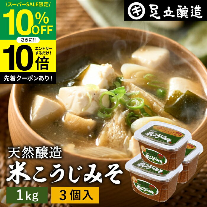 【SS限定★10%OFF】\エントリーでP10倍/蔵出し直送 毎日飲みたくなる足立醸造の定番みそ 米こうじみそ 1kg カップ × 3個 セット 送料無料 足立醸造 添加物を極力使わない 甘口 味噌 みそ 米みそ 高級 国産大豆 丸大豆 離乳食 米麹味噌 長期熟成 天然醸造