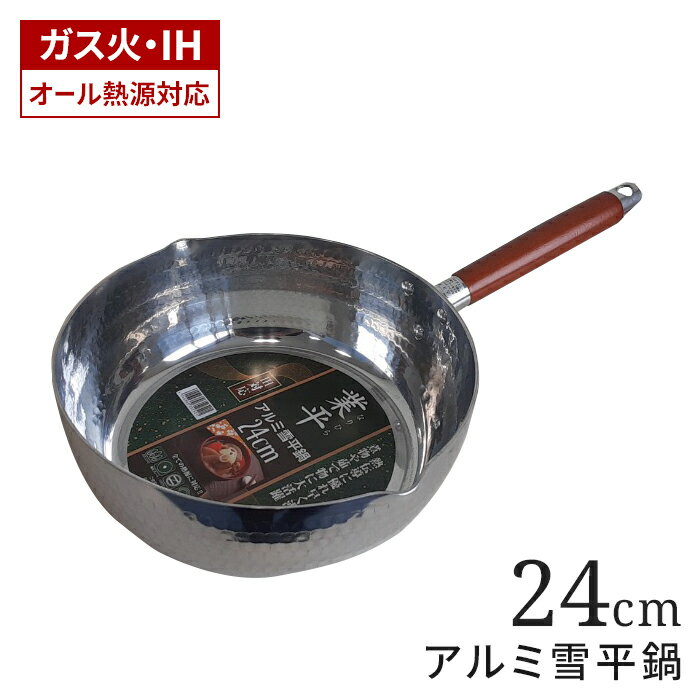 【楽天スーパーSALE10%OFF】雪平鍋 アルミ 24cm IH対応 行平鍋 3.3L ゆきひら鍋 片手鍋 アルミ 軽量 アルミ鍋 ih ガス火 オール熱源対応 注ぎ口付き 両口 片手なべ 和鍋 深型 木柄 軽い 打ち出し おしゃれ シルバー みそ汁 新生活 一人暮ら