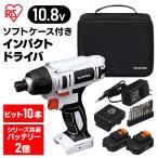 電動ドライバー インパクトドライバー セット バッテリー 2個 ケース付き 充電式 アイリスオーヤマ 10.8V ビット付 DIY 小型 充電式インパクトドライバ JID80-C