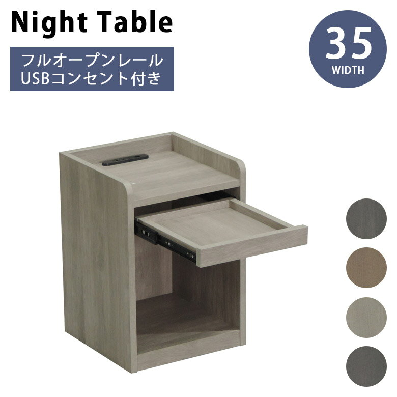 【全商品に使える2%offクーポンあり!!】 ナイトテーブル オープン収納 スリム サイドテーブル スライドテーブル フルオープンレール 電動ベッド用 幅35cm コンセント付き コンパクト ベッドサイド ブラウン ブラック ダークブラウン ライトグレー 木製 木製収納