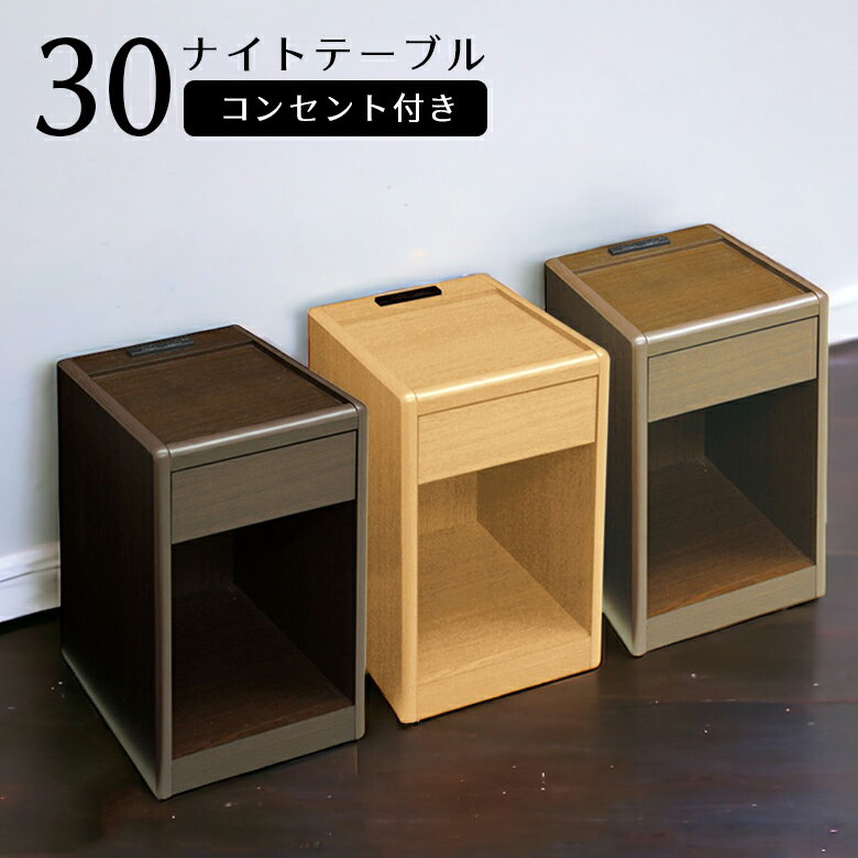 【全商品に使える10%offクーポンあり!!】 ナイトテーブル オープン収納 スリム サイドテーブル 引出し収納 電動ベッド用 幅30cm コンセント付き コンパクト ベッドサイド ブラウン ライトブラウン ダークブラウン 木製 木製収納 シンプル 隙間収納