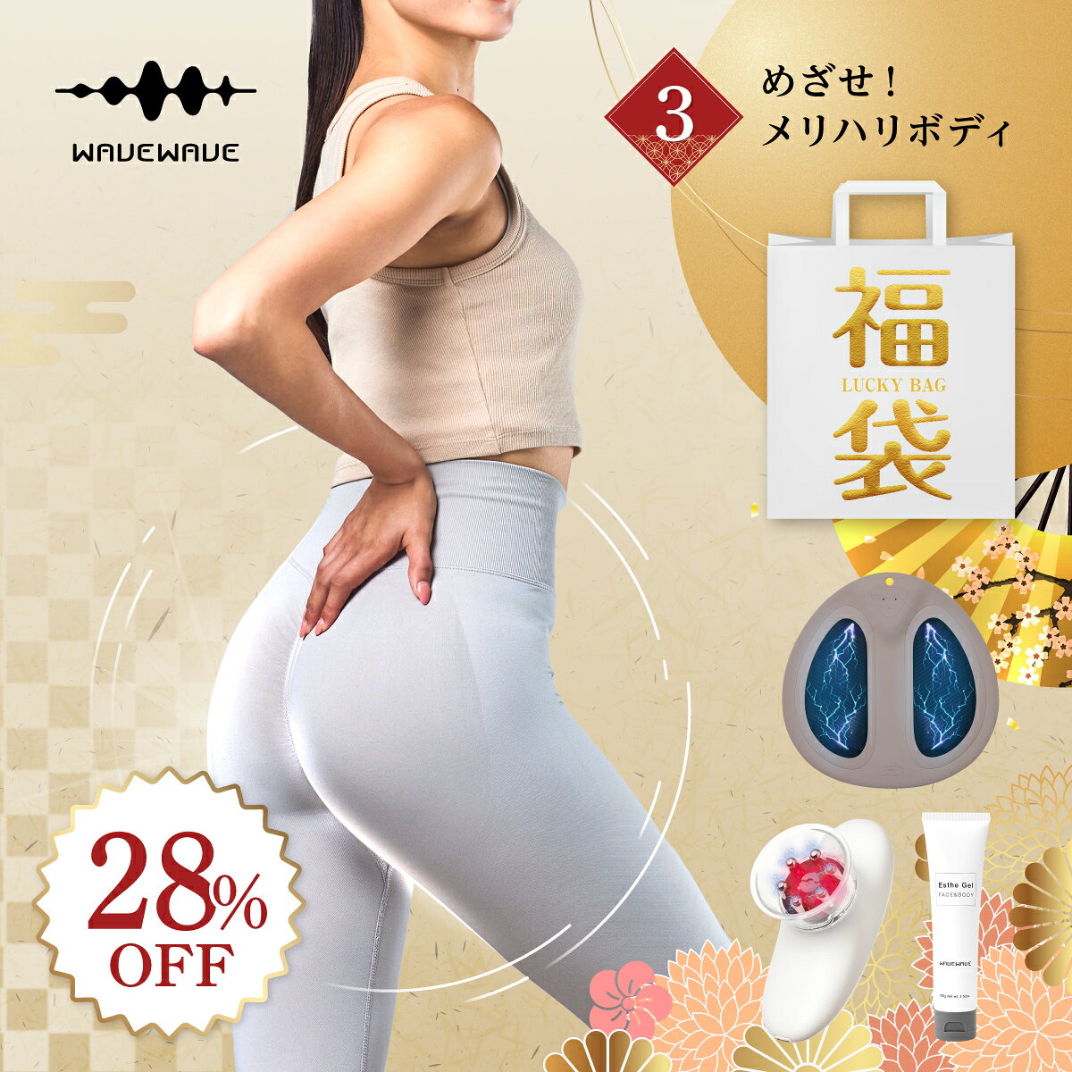 福袋28%OFF【目指せメリハリ体型】2026 福袋 福袋対象 2026福袋 新春福袋 家電 福袋 健康 初売り 2026新春初売り カッピング 脂肪 セルライト EMS お尻 EMSマット 防水 お風呂 ラッピング無料 配送日時指定可